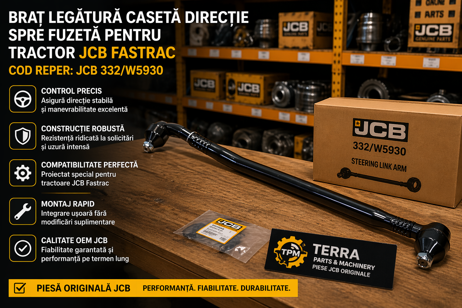 Brațul de legătură JCB 332/W5930 oferă precizie ridicată în manevrare. Operatorul beneficiază de control optim. Utilajul răspunde exact la comenzi.