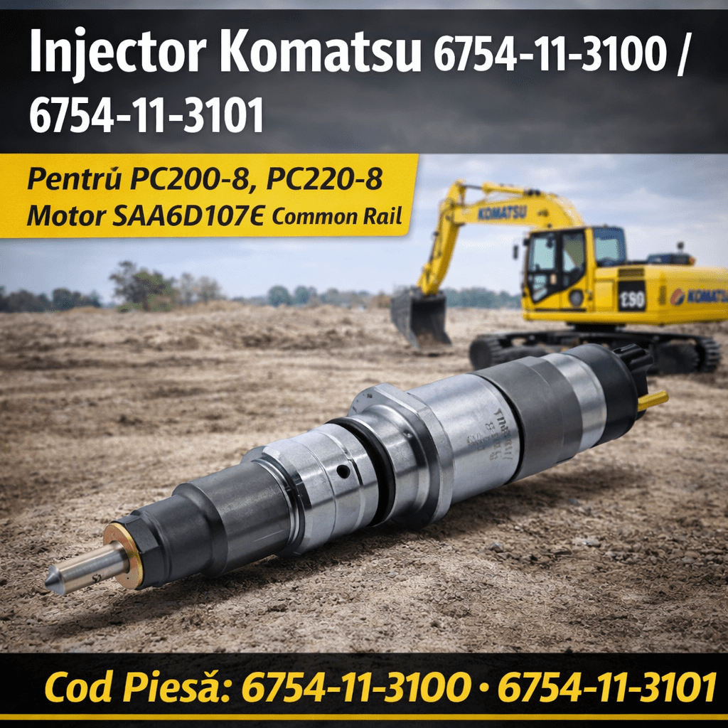 Injectorul Komatsu cod 6754-11-3100 / 6754-11-3101 asigură injecția precisă a combustibilului în motoarele Common Rail.