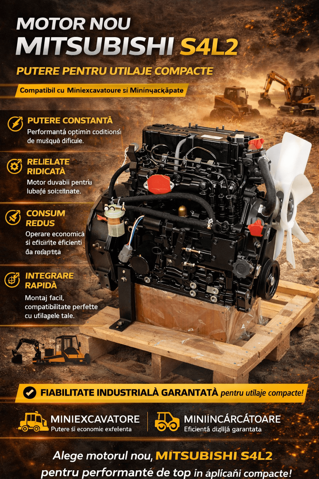 - Motor nou Mitsubishi S4L2, calitate OEM garantată