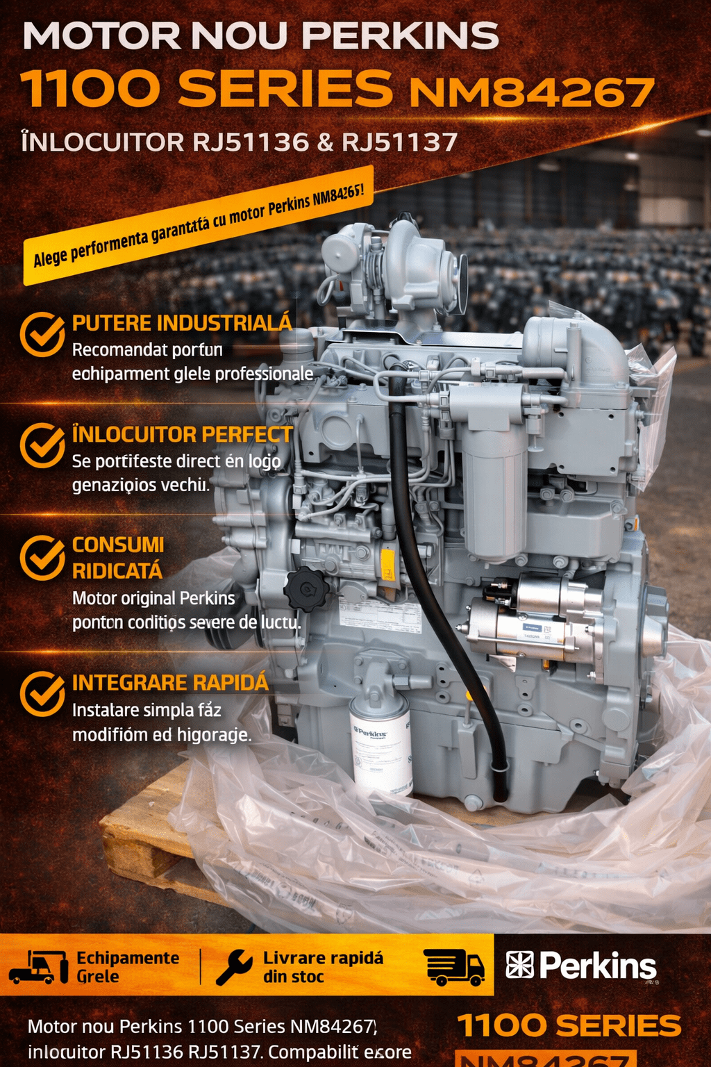 Motorul nou Perkins 1100 Series NM84267 oferă performanță industrială de top pentru aplicații grele. Este înlocuitor direct pentru modelele RJ51136 și RJ51137. Se potrivește perfect pe excavatoare, vole și buldoexcavatoare moderne.
