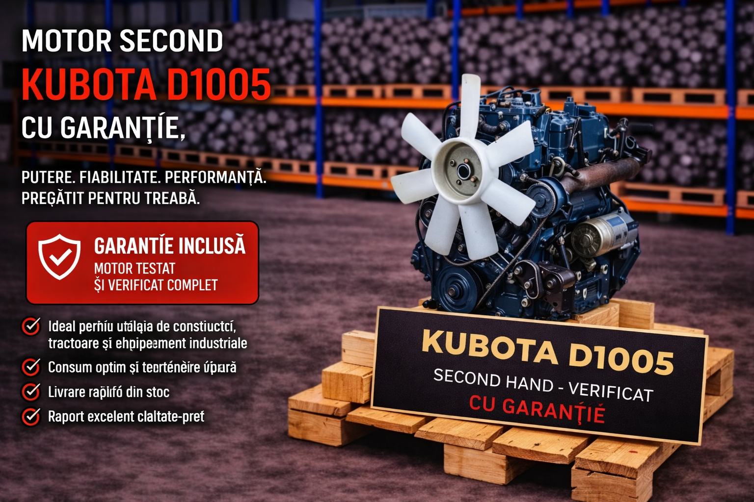 Motor second Kubota D1005 cu garanție – motor fiabil pentru utilaje și tractoar