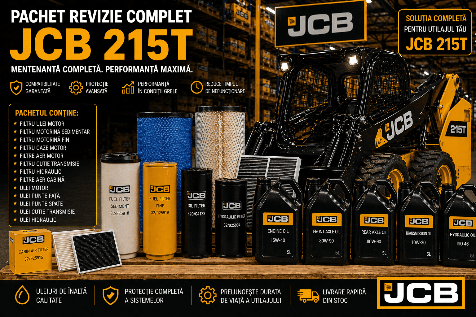 Acest kit de mentenanță JCB 215T protejează motorul, transmisia și sistemul hidraulic în condiții dificile. Reduce uzura prematură și minimizează riscul defecțiunilor neprevăzute. Este ideal pentru aplicații intensive în construcții, agricultură și industrie.