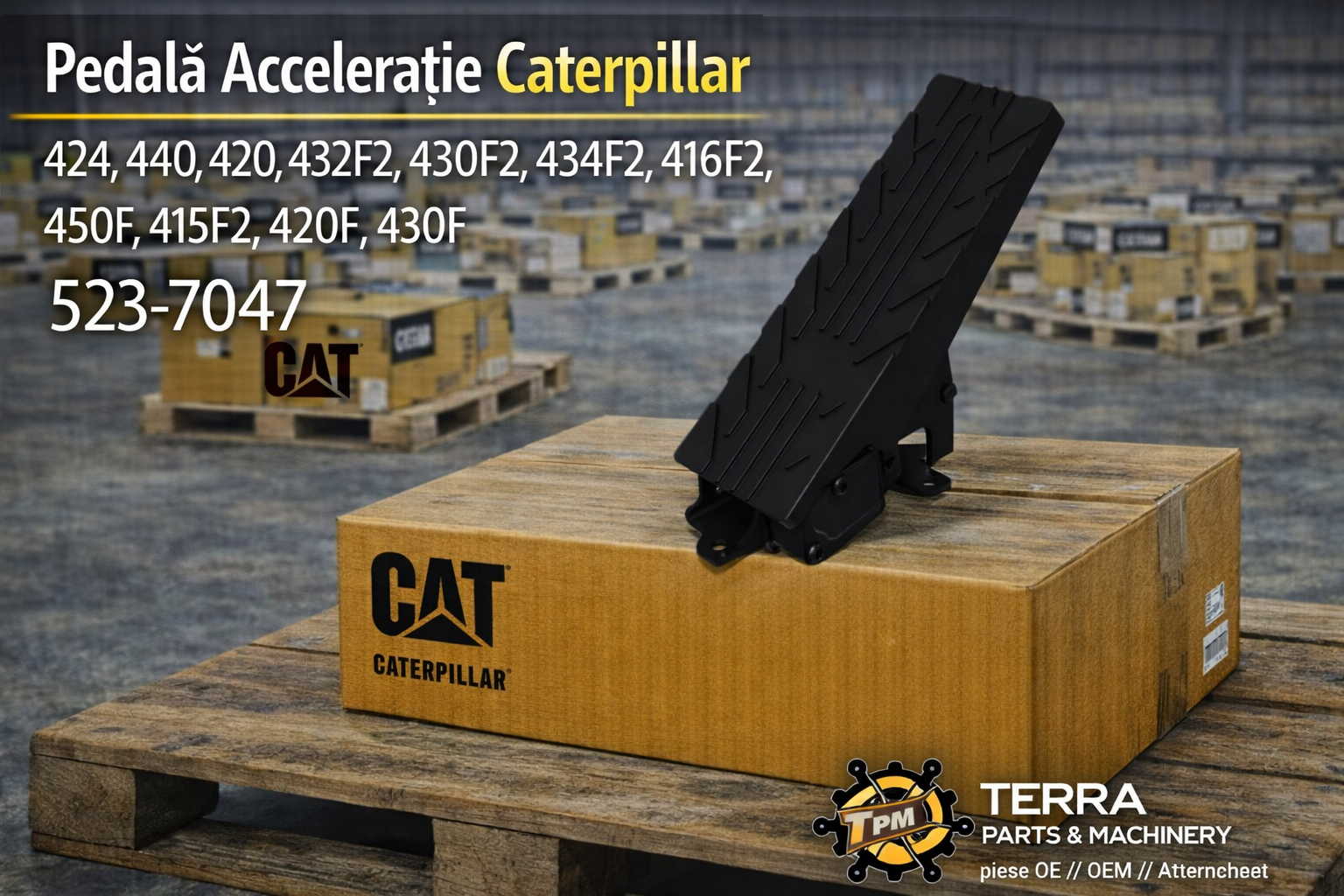 Pedala de accelerație Caterpillar, cod 523-7047, oferă control precis și răspuns rapid al motorului. Este proiectată pentru buldoexcavatoare Caterpillar din seriile 424, 440, 420, 432F2, 430F2, 434F2, 416F2, 450F, 415F2, 420F și 430F.