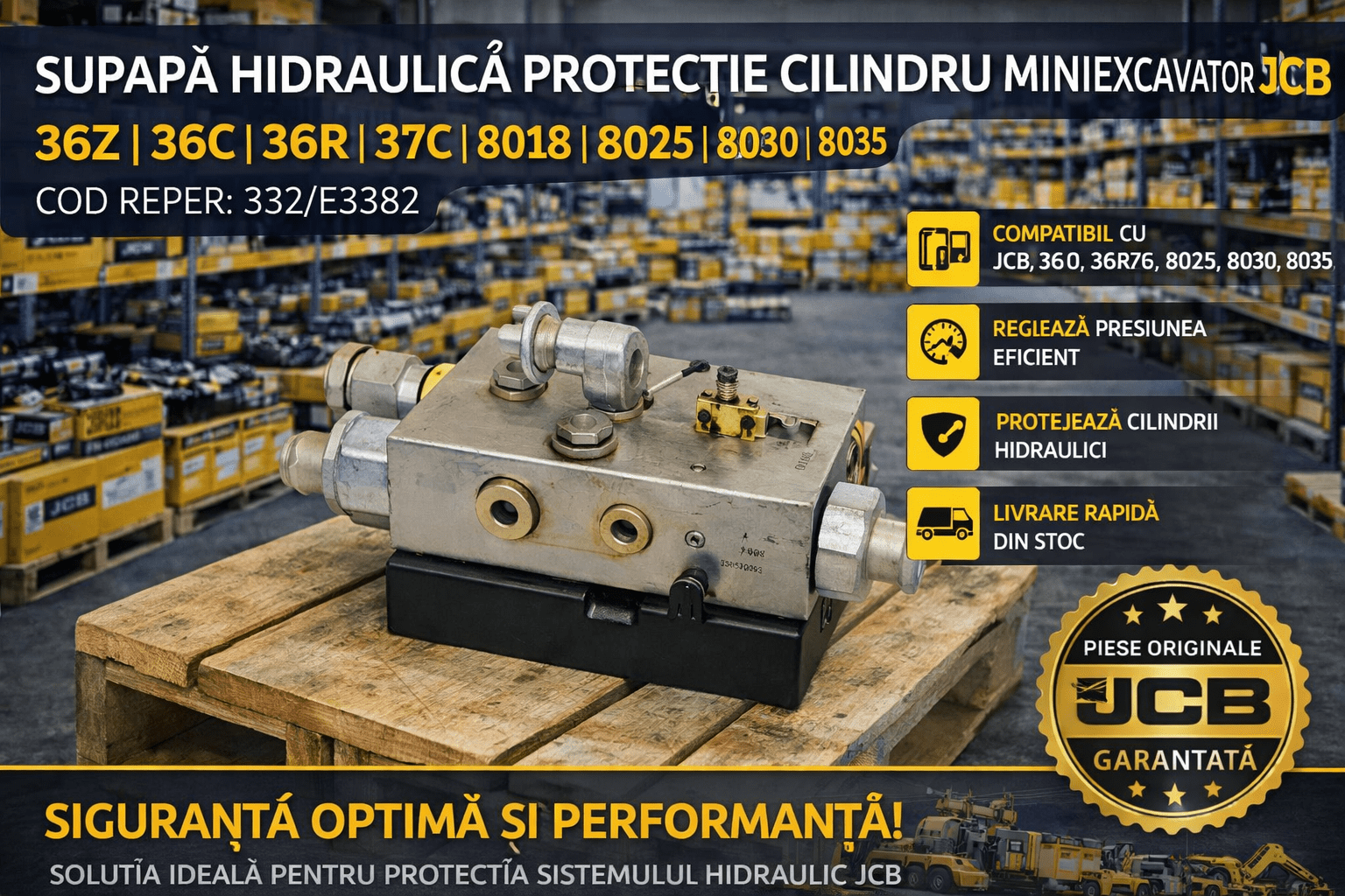 Supapă hidraulică protecție cilindru JCB 36Z 8035 HBCV – cod 332/E3382